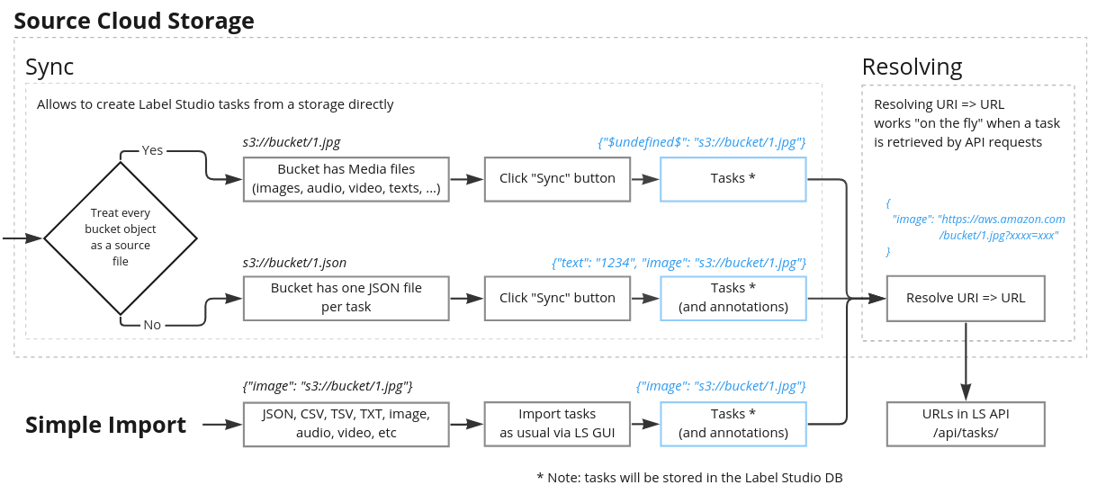- Sync - when Label Studio scans your storage and imports tasks from it.